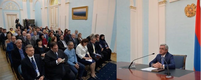 «Դուք մեծ ուժ էք, դուք ձեր գործունէութեամբ մեզի վստահութիւն եւ եռանդ կու տաք, որպէսզի մենք կարենանք ուժերու առաւելագոյն գործադրութեամբ կատարել մեր պարտականութիւնները: Մենք մեր նախորդ հանդիպումներէն մէկուն ընթացքին խօսած ենք այն մասին, որ պէտք է առանձնացնել երկու կարեւոր հանգամանք. առաջին հանգամանքը այն լրատուամիջոցներուն եւ լրագրողներուն աշխատանքն է, որ ուղղուած է բուն հայկական համայնքին, այսինքն` հայապահպանութեան ուղղուած աշխատանքը, եւ երկրորդ` տարբեր երկիրներու մէջ աշխատող ազգութեամբ կամ արմատներով հայ լրագրողները համախմբելն է: Ե՛ւ առաջին, ե՛ւ երկրորդ պարագային չափազանց կարեւոր է, որ այս արագ փոփոխուող աշխարհին մէջ, մենք կարենանք գտնել աշխատանքի ճիշդ ձեւերը, պահպանել հետաքրքրութիւնը այն նիւթերուն նկատմամբ, որոնց վրայ մենք կ’աշխատինք, որոնցմով կը հպարտանանք եւ կ’ուզենք անով ազդեցութիւն ունենալ այս կամ այն հարցին վրայ: Երկու պարագային ալ, կը կարծեմ, թէ չափազանց կարեւոր է միշտ հաւատարիմ ըլլալ լրագրողական բարեխղճութեան: Շատ կարեւոր է նաեւ, որ մենք մեր ջանքերը կարենանք համատեղել, գտնել այն էական խնդիրները, որոնց լուծման վրայ պէտք է ծախսենք մեր հիմնական ներուժը եւ մեր կարողութիւնները»,- ըսած է նախագահ Սերժ Սարգսեան: