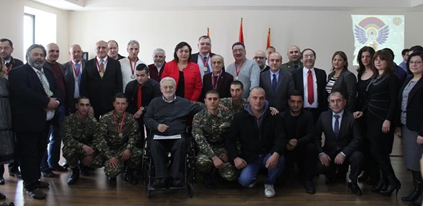 Այնուհետեւ նախարար Հրանոյշ Յակոբեանը միջոցառման մասնակից հայրենադարձ ազատամարտիկներ Անդրանիկ Պօղոսեանին, Մարտիրոս Ժամկոչեանին, Սիմոն Գաֆալեանին, Վազգէն Սիսլեանին, Հարմիկ Յովսէփեանին, Հրանդ Աշճեանին, Շահէ Աճեմեանին, Անդրանիկ Չաւուշեանին, ինչպէս նաեւ Գուսան Հայկազունին  պարգեւատրեց Սփիւռքի նախարարութեան Երախտագիտութեան մետալով:
