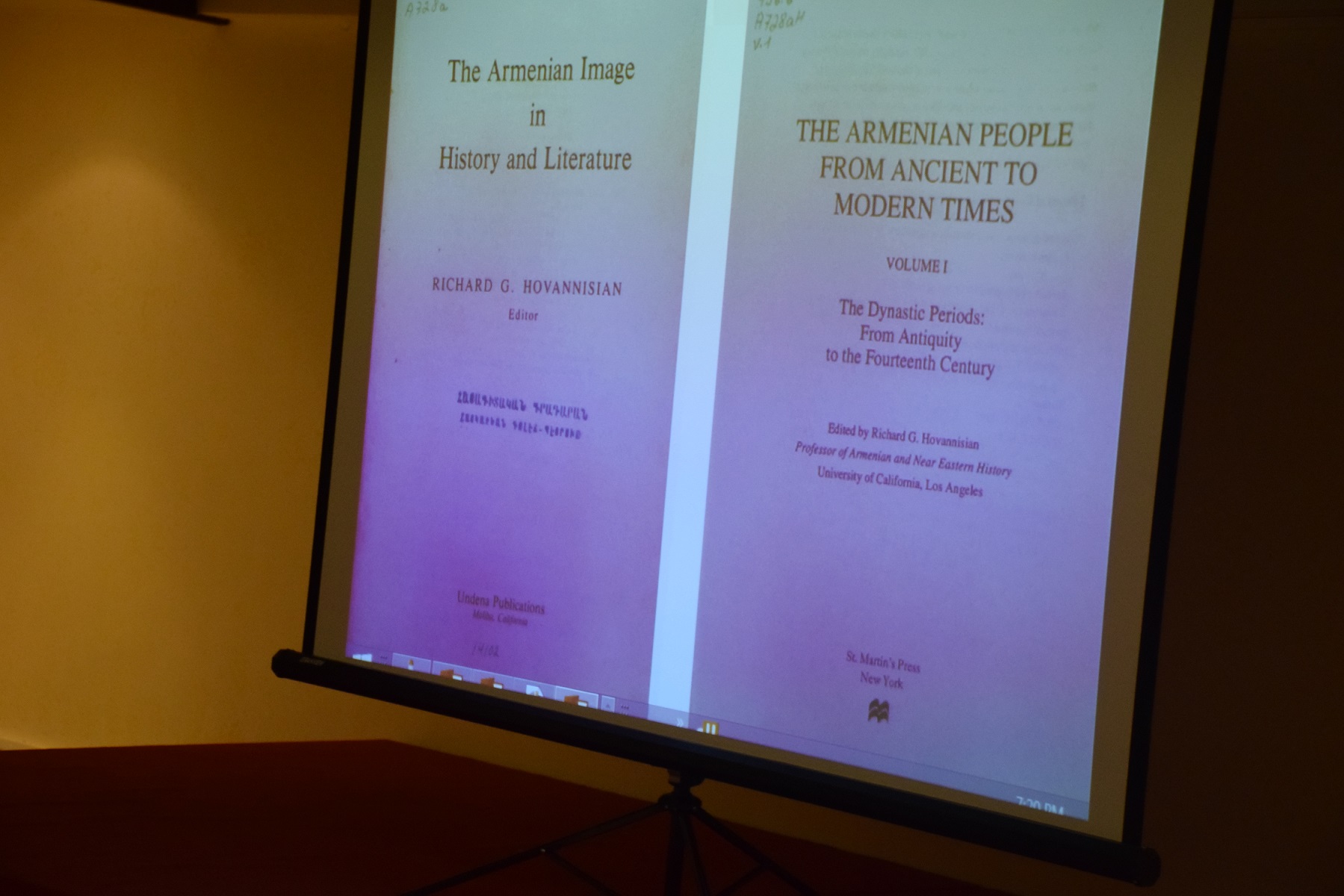 Դոկտ. Անդրանիկ Տագէսեան հակիրճ սակայն բազմաբովանդակալից կերպով ու սահիկներու ցուցադրութեամբ ներկայացուց հռչակաւոր պատմաբանին աւանդը հայագիտութեան զարգացման մէջ` լուսարձակի տակ առնելով անոր բազմավաստակ նուիրումը եւ հարուստ գրապատմագրական, գիտաժողովներու ու հրատարակչական գործերու վերլուծումը ու հաստատելով անոնց գնահատանքի բարձրորակ դրոշմը: Արդարեւ, յարգելի Դոկտորը տուաւ ճշգրիտ ու պատուաբեր նկարագրութիւն պատմաբանի գիտական մշակի բերքին ու հաւաքականութեան անոր բերած դերի մասին:
