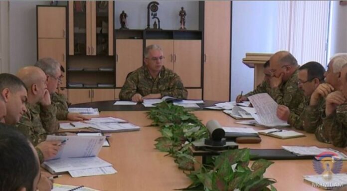 Արցախի Հանրապետութեան պաշտպանութեան նախարարութեան մամլոյ ծառայութիւնը կը հաղորդէ, թէ 27 Ապրիլին Արցախի Հանրապետութեան պաշտպանութեան բանակի հրամանատար, հազարապետ-զօրավար Լեւոն Մնացականեանը հրաւիրած է ծառայողական խորհրդակցութեան, մասնակցութեամբ՝ բանակի հրամանատար տեղակալներու, շտապի բաժիններու եւ ծառայութեան պետերու: