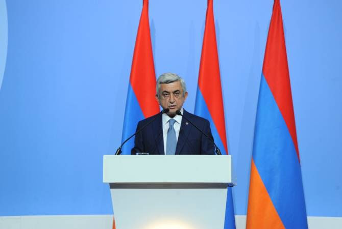 «Հայաստան-Արցախ-Սփյուռք եռամիասնության կոչը չպետք է դիտվի որպես ինքնուրույնության հականիշ: Ընդհակառակը, համագործակցաբար, ուս ուսի տված և միայն տարբեր մոտեցումների համադրմամբ մենք կարող ենք հասնել արդյունավետ լուծումների: Մեր ուժը մեր բազմակարծության մեջ է: Յուրաքանչյուր արտասահմանյան ուղևորության ժամանակ ես բաց չեմ թողնում տեղում հայ համայնքի ներկայացուցիչների հետ հանդիպելու առիթը: Բոլոր այդ հանդիպումներն առանձնացել են հատուկ ջերմությամբ, և մեծ հպարտություն եմ զգացել՝ տեսնելով մեր քույրերի ու եղբայրների հաջողությունները: Ամեն տեղ ես տեսել եմ հպարտ հայեր, ովքեր պահպանել են իրենց ազգային դիմագիծը և ամեն ինչ անում են մեր ընդհանուր հարուստ ժառանգությունը սերնդեսերունդ փոխանցելու համար»,-ասաց Սերժ Սարգսյանը:
