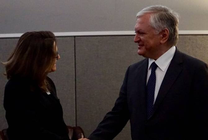 ՀՀ Նախագահի գլխավորած պատվիրակության կազմում Նյու Յորքում գտնվող արտգործնախարար Էդվարդ Նալբանդյանը սեպտեմբերի 19-ին հանդիպեց Կանադայի արտգործնախարար Քրիստիա Ֆրիլանդի հետ: