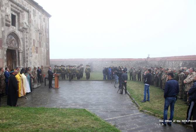 Իր ելույթում Նախագահ Սահակյանը նշել է, որ պետությունը միշտ հիշում եւ բարձր է գնահատում իր երախտավորներին՝ արժանացնելով նրանց բարձր պետական պարգեւների: «Գումարտակը մեր մյուս զորախմբերի հետ մեկտեղ մասնակցեց Մարտակերտի շրջանի ազատագրական եւ ինքնապաշտպանական մարտերին: Մեր քաջ եղբայրների խիզախության ու անձնազոհության շնորհիվ կասեցվեց թշնամու առաջխաղացումը՝ հավատ ներշնչելով մեր ժողովրդին սեփական ուժերի հանդեպ, ամրապնդելով հակառակորդին արժանի հակահարված հասցնելու եւ նրա հանցավոր ծրագրերը ձախողելու հայ զինվորի կամքն ու վճռականությունը: Դա սրբազան պայքար էր, որը պսակվեց հաղթանակով»,-ընդգծել է երկրի ղեկավարը: