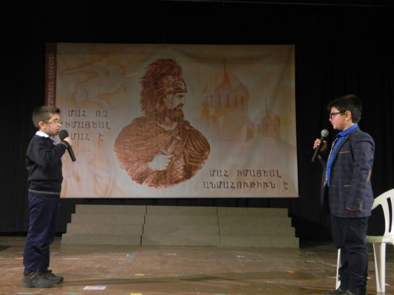 Լիբանանի, Հայաստանի եւ վարժարանիս քայլերգներու ունկնդրութենէն ետք բացման խօսքը կատարեցին 11-րդ դասարանի աշակերտներ՝ Լոռի Տէմիրճեան, Մհեր Ճենանեան, Դուին Էքշեան եւ Ալինա Գայֆէճեան, որոնք ըսին, թէ մենք փոքր տարիքէն կը յիշատակենք այս տօնը, այսօր սակայն կը հասկնանք, որ Վարդանանց յիշատակութիւնը տօն չէ, այլ սրբազան խորհուրդ մը, որուն ճակատամարտը ամէն օր կը մղուի մեր կեանքի ընթացքին: «Այսօր հաւատքի, հայրենասիրութեան յիշատակի օրն է, որ յաղթանակ մըն է լոյսի՝ խաւարին դէմ, յաղթանակ մը բարիի՝ չարին դէմ, յաղթանակ խաչին՝ կրակին դէմ: Այսօր եւս մենք կանչուած ենք՝ դէմ կենալու խաւարին, չարին ու կրակին՝ ըլլալով հաւատարիմ ու անյաղթ զինուորը Քրիստոսի եւ հայրենիքի»,- այս արտայայտութիւններով իրենց խօսքը եզրափակեցին աշակերտները: