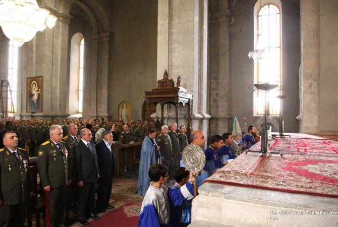 Արցախի Հանրապետութեան նախագահ Բակօ Սահակեան Մայիս 10-ին Շուշիի Սուրբ Ղազանչեցոց Ամենափրկիչ եկեղեցւոյ մէջ ներկայ գտնուած է Արցախի Հանրապետութեան պաշտպանութեան բանակի համար մատուցուած սուրբ պատարագին: Ինչպէս կը փոխանցէ «Արմէնփրես»-ը, այս մասին տեղեկացուցին Արցախի Հանրապետութեան նախագահի աշխատակազմի տեղեկատուութեան գլխաւոր վարչութենէն: