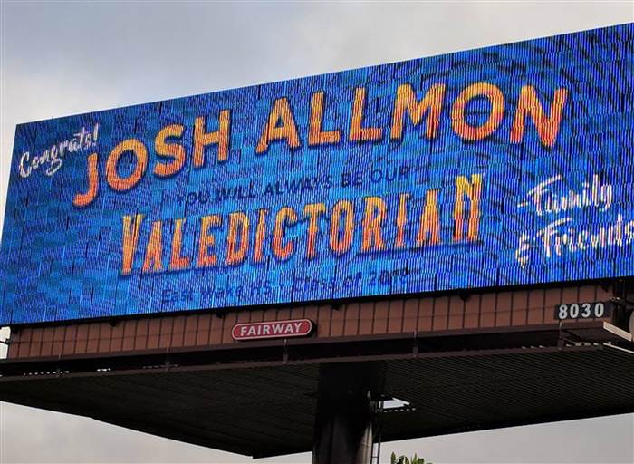 Բայց առաջնութիւնը շահող աշակերտին հայրը շատ յուսախաբ եղած է վերոյիշեալ կոչումներու փոփոխութենէն եւ կարծես վրէժը լուծելու համար, որմազդ մը վարձած է մի քանի շաբաթուան համար (տես նկարը), որ հետեւեալը կ’ըսէ. «Ճաշ Ալմըն, դուն միշտ պիտի ըլլաս մեր Valedictorian-ը 2018-ի շրջանաւարտներուն մէջ»: