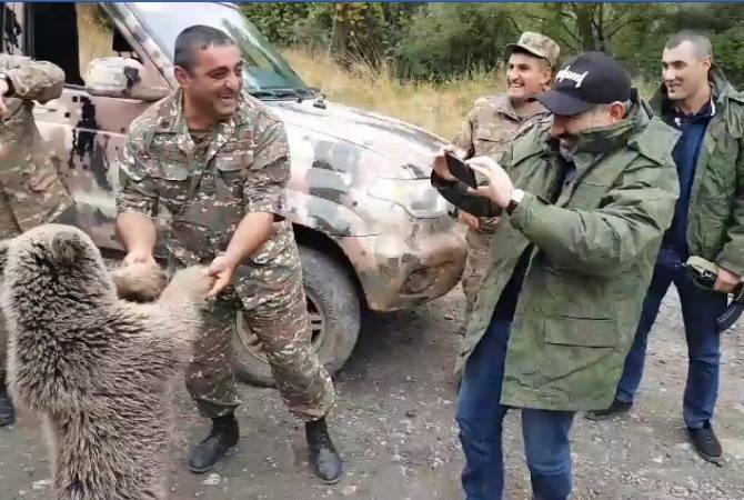 Two bears appeared in front of PM Nikol Pashinyan’s car during his visit to Artsakh. ARMENPRESS reports Prime Minister’s aide Nairi Sargsyan posted footage on his Facebook page.