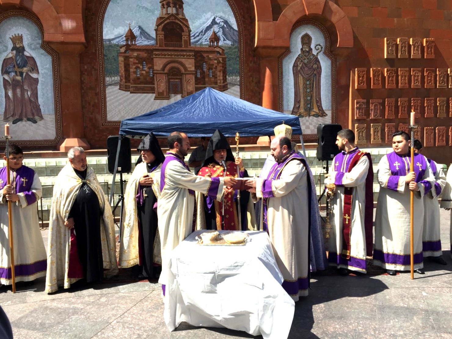 Յաւարտ Սուրբ եւ Անմահ Պատարագին, դպրաց դասի, սարկաւագներու, քահանայ հայրերու եւ Սրբազան հօր գլխաւորութեամբ թափօր կազմուեցաւ, որ ուղղուեցաւ դէպի Մայր Տաճարի շրջափակ։ Սրբազան Հօր հանդիսապետութեամբ տեղի ունեցաւ մատաղօրհնէքի արարողութիւնը։