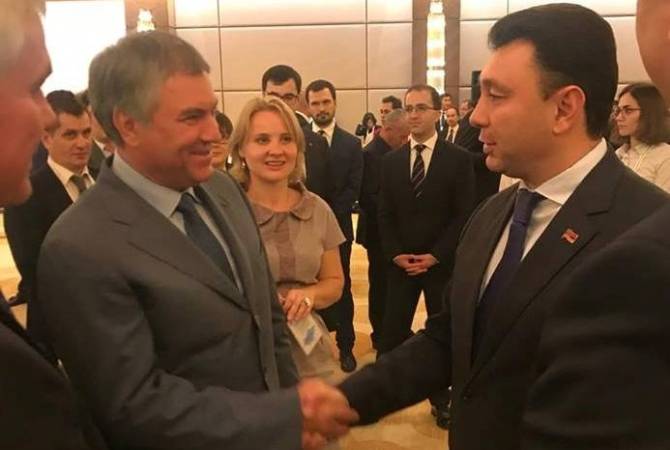During the private meeting the sides attached importance to the development and deepening of the Armenian-Russian inter-parliamentary relations, and cooperation within the framework of the CSTO PA and CIS IPA, the parliament’s press service said.