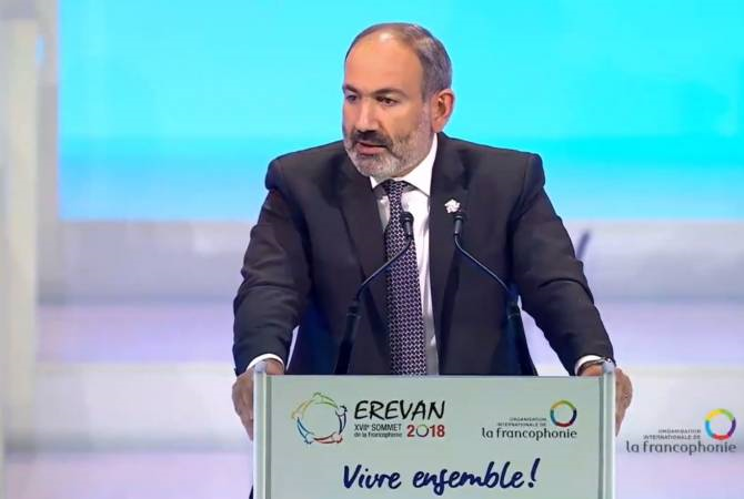 «Ես եւ ողջ հայ ժողովուրդը ուրախ ենք Երեւանի մէջ հիւրընկալելու ֆրանսախօս պետութիւններու եւ կառավարութիւններու ղեկավարներու 17-րդ գագաթնաժողովը։ Կը մաղթեմ բարի գալուստ Հայաստան. Քրիստոնէութեան բնօրրան, հազարամեակներու պատմութիւն եւ մշակոյթ ունեցող յաւերժական Հայաստան, որ այս ամիս կը նշէ իր մայրաքաղաք Երեւանի հիմնադրման 2800-ամեակը։ Իրական, ամուր ինքնութիւն, ստեղծարար ներուժ, ուժգնութիւն ունեցող Հայաստան, որ ապրած է 1915 թուականի Ցեղասպանութեան ողբերգութիւնը եւ այսօր առաջ կը շարժի՝ վստահ ըլլալով իր ապագային համար։ Այս նոր Հայաստանը, որ կ՝առաջնորդուի «Թաւշեայ յեղափոխութեան» գաղափարներով, այս քաղաքացիական եւ ժողովրդավարական շարժումով, որ առաջ տարուած է հայ երիտասարդներու եւ կանանց կողմէ, որոնք յաջողած են ողջ բնակչութեան հետ կիսել իրենց «Միասին ապրելու» կամքը ազատ, արդար եւ համերաշխ հասարակութեան մէջ»,- նշած է վարչապետը: