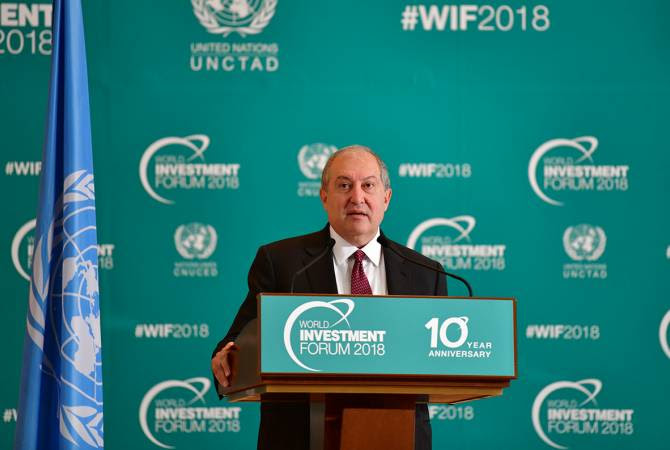 Ելոյթի աւարտին նախագահը հրաւիրած է ներդրումներ կատարել նոր Հայաստանի՝ 21րդ դարու Հայաստանի մէջ: