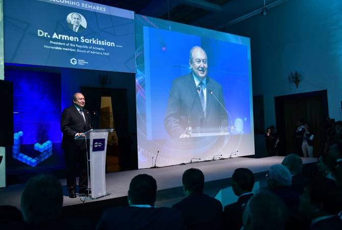 Thereafter, the President participated in the opening ceremony of the Global Innovation Forum: Engineering the Evolution organized by the Foundation. President Sarkissian, who is also an honorary member of the FAST Foundation’s Advisory Board, welcomed the Forum participants in the country of 21st century and attached importance to holding such forums in Armenia. In particular, the President stated that Armenia is not only the birthplace of civilizations, but has been in the crossroads of East and West from the very start.