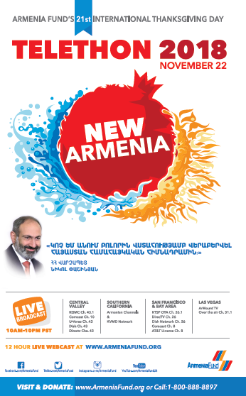 ՆՈՐ ՕՐ, ԼՈՍ ԱՆՃԵԼԸՍ. Հայաստանի, Արցախի եւ սփիւռքի աշխարհատարած ողջ հայութիւնը, Հինգշաբթի, Նոյեմբեր 22-ին, կը պատրաստուի ազգային-հայրենասիրական խորագոյն գիտակցութեամբ իր մասնակցութիւնը բերելու եւ նիւթական աջակցութիւն ընծայելու «Հայաստան» համահայկական հիմնադրամի աւանդութիւն դարձած տարեկան դրամահաւաքին: