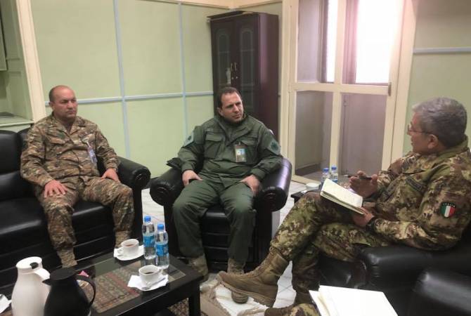 “The Italian general briefed Davit Tonoyan in-detail about the troops and combat situation and specificities of service. An interesting discussion took place about the specificities of the Resolute Support troops’ combat shift and especially technical means. The caretaker defense minister was shown exclusively special supervision and other measures. General Camporeale expressed special gratitude to the service of the 121 Armenian peacekeeping officers and soldiers, who, according to the general, stand out with high discipline, proactiveness and unprecedented training,” defense ministry spokesperson Artsrun Hovhannisyan said on Facebook.