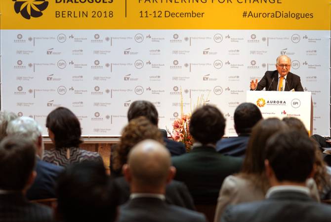 «Մարդկությունը փխրուն աշխարհում. Գործընկերություն հանուն փոփոխության» խորագրով Aurora Dialogues բեռլինյան քննարկման ուշադրության կիզակետում էին փախստականների չդադարող ճգնաժամը, տեղահանության եւ միգրացիայի խնդիրները, հակամարտությունների սցենարները եւ պոպուլիզմի ահագնացող միտումները։