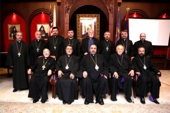 ՆՈՐ ՕՐ, ԼՈՍ ԱՆՃԵԼԸՍ.- Երեքշաբթի, 11 Դեկտեմբեր 2018-ին Հիւսիսային Ամերիկայի Արեւմտեան թեմի Առաջնորդարանէն ներս կազմակերպուած էր ընդունելութիւն մը՝ ի պատիւ Երուսաղէմի Հայոց Պատրիարք՝ Ամենապատիւ Տ. Նուրհան Արք. Մանուկեանի։ Ներկայ էին Թեմիս Առաջնորդ՝ Գերշ. Տ. Յովնան Արք. Տէրտէրեանը, նախկին Առաջնորդ՝ Գերշ. Տ. Վաչէ Արք. Յովսէփեանը եւ Դամասկոսի Թեմի Առաջնորդ՝ Գերշ. Տ. Արմաշ Եպս. Նալպանտեանը, հոգեւորականաց դասը, բարերարներ, ազգային գործիչներ, ինչպէս նաեւ հաւատացեալներ։