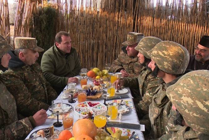 Դիրքապահ անձնակազմի հետ ունեցած շփումներուն ընթացքին պաշտպանութեան նախարարներն ու անոնց ուղեկցող բարձրաստիճան զինուորական եւ քաղաքացիական պաշտօնեանները ջերմօրէն շնորհաւորած են մարտական հերթապահութիւն կրող զինծառայողներու Նոր տարին եւ յանձնած են ամանորեայ նուէրներ, միաժամանակ հետաքրքրուած են առկայ մարտավարական իրավիճակով: