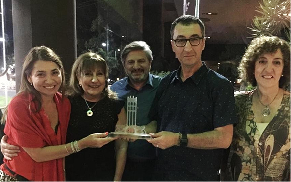 Foto: El presidente del Consejo Central de la O.D.L.A., Sergio Nahabetian, la directiva de la U.G.A.B., Susana D. de Nahabetian y la directora de SARDARABAD, Diana Dergarabetian con el diputado Cem Ozdemir y su esposa, Pia Castro.