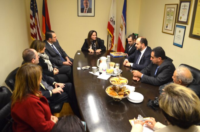 ՆՈՐ ՕՐ, ԼՈՍ ԱՆՃԵԼԸՍ.- Չորեքշաբթի, Յունուար 16-ին, ՀԲԸՄ Մանուկեան-Տեմիրճեան վարժարան այցելեց Հայաստանի Կրթութեան եւ գիտութեան նախարարի պաշտօնակատար Արայիկ Յարութիւնեան, ընկերակցութեամբ Ամերիկայի Ճարտարագէտներու եւ Գիտնականներու ընկերակցութեան (Armenian Engineers and Scientists of America, Inc.) նախագահ Ճոն Շիրաճեանի, AESA-ի Հայաստանի ներկայացուցիչ Դոկտ. Վարդան Գէորգեանի եւ Երեւանի Պոլիտեխնիկական համալսարանի Շրջանաւարտից միութեան նախագահ Ժիրայր Աբրահամեանի: