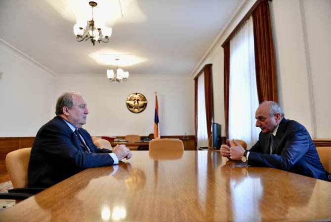 President of Armenia Armen Sarkissian on April 2 met with President of the Republic of Artsakh Bako Sahakyan on the sidelines of his working visit in Artsakh, the President’s Office told Armenpress.