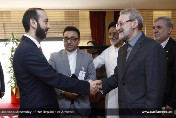 ՀՀ Ազգային ժողովի նախագահ Արարատ Միրզոյանն ապրիլի 8-ի առավոտյան Միջխորհրդարանական միության 140-րդ նստաշրջանի աշխատանքների շրջանակում հանդիպել է Իրանի Իսլամական Հանրապետության Մեջլիսի նախագահ Ալի Լարիջանիի հետ: Ինչպես «Արմենպրես»ին տեղեկացրեցին  ՀՀ ԱԺ լրատվության և հանրության հետ կապերի վարչությունից, Ալի Լարիջանին, ողջունելով Արարատ Միրզոյանին, նշել է, որ կապերը մեր երկու պետությունների միջեւ եղբայրական են, ինչի նշանն էր նաեւ վարչապետ Նիկոլ Փաշինյանի պաշտոնական այցն Իրան: