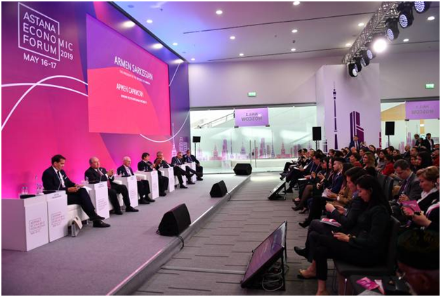 «ԶԱՐԹՕՆՔ», ՊԷՅՐՈՒԹ – Աշխատանքային այցով Ղազախստան գտնուող Հայաստանի Հանրապետութեան նախագահ Արմէն Սարգսեան՝ Նուր-Սուլթանի մէջ իրականացուող տնտեսական 12-րդ ամենամեայ նիստին ծիրէն ներս՝ մասնակցած է «Համագործակցութեան համաշխարհային համակարգի փլուզման վտանգները» խորագիրով քննարկման:
