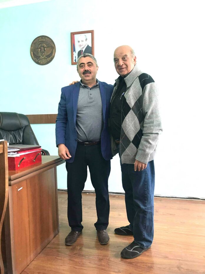 Քարվաճառի մարզպետարանէն ներս ընկեր Ահարոնեան դիմաւորուեցաւ մարզպետ Մարտիրոսեանի եւ օգնական Պօղոս Մեղրեանի կողմէ։