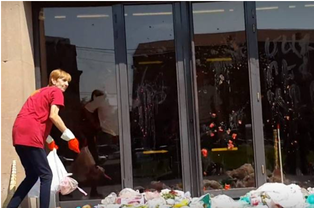 Երեւանի աւագանիի նախկին անդամ (Երկիր Ծիրանի) Սոնա Աղեկեան տեսանիւթ հրապարակած է Երեւանի քաղաքապետարանի մօտ տեղի ունեցած բողոքի գործողութենէն: Քաղաքացիներն աղբի տոպրակներ կը նետեն շէնքի մուտքի մօտ` պատկան մարմիններուն ուշադրութիւնը հրաւիրելով քաղաքի առջեւ ծառացած խնդրի վրայ: