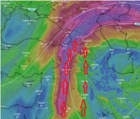 «ԶԱՐԹՕՆՔ», ՊԷՅՐՈՒԹ –Յուլիս 21-23-ին Իրաքի տարածքէն արեւադարձային տաք օդային հոսանքներու ներթափանցման պատճառով օդի ջերմաստիճանը Երեւանի, Արարատի եւ Արմաւիրի մարզերուն, Սիւնիքի հովտային գօտիին մէջ ցերեկուան ժամերուն ( ժամը 16:00-18:00) պիտի հասնի +40․․․+42 աստիճանի: Այս մասին facebook-ի իր էջին մէջ գրած է ՀՀ ԱԻՆ օդերեւութաբանական ծառայութեան պետ Գագիկ Սուրէնեան: