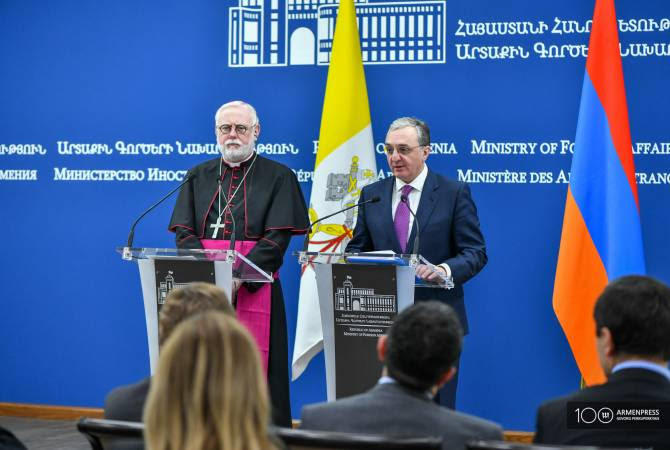 Armenia is committed to continue and further deepen close cooperation and partnership with the Holy See, ARMENPRESS reports Armenian Foreign Minister Zohrab Mnatsakanyan said in a joint press conference with Secretary for Relations with States within the Holy See’s Secretariat of State Paul Richard Gallagher.