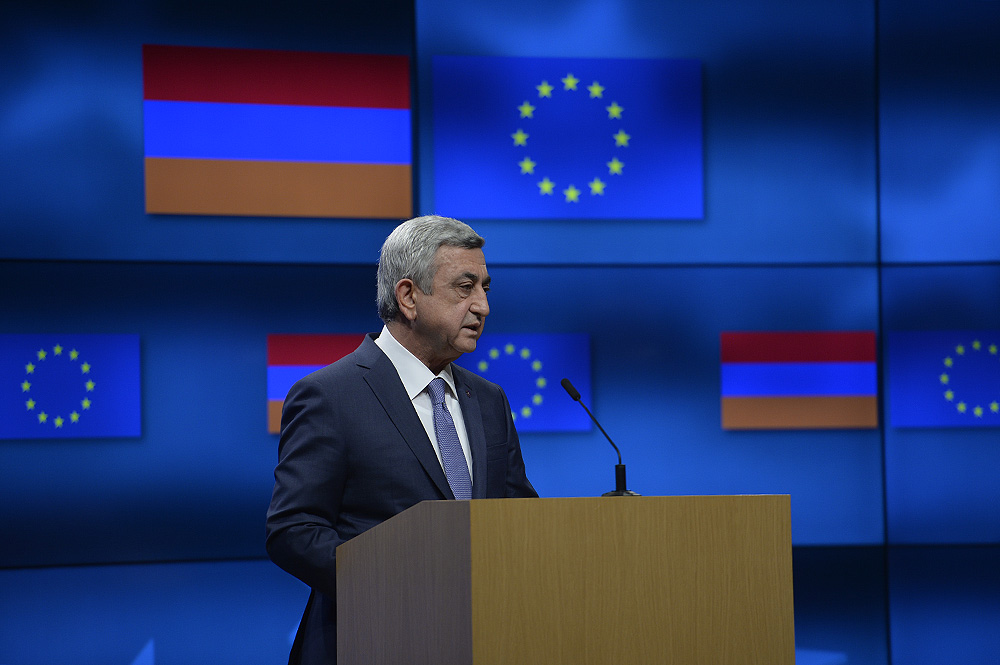 Շատ կարևոր է, որ Մինսկի խմբի համանախագահների միջնորդական ջանքերը ստանան միջազգային հանրության անվերապահ աջակցությունը: Ցավոք մենք ականատես ենք, թե ինչպես է Ադրբեջանը շարունակվում զինվել ու սպառնում Արցախին ու Հայաստանին: Ուզում եմ, որ Բաքուն կրկին լսի իմ այս ուղերձը: Արցախը երբեք չի լինելու Ադրբեջանի կազմում և այս խնդիրը չունի ռազմական լուծում»,- ասաց Սարգսյանը: