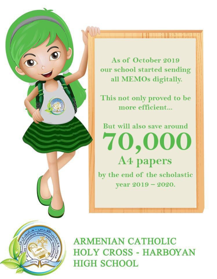 «Հոկտեմբեր 2019էն սկսեալ սկսանք դպրոցական շրջաբերականները մեր ծնողներուն ղրկել ելեկտրոնային տարբերակով, փոխան՝ տպագրի: