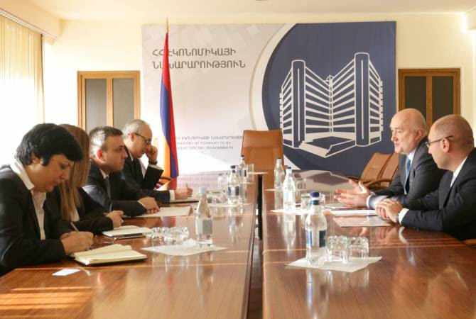 Deputy minister of economy Varos Simonyan today received Dmitry Ladikov-Roev, Member of the Management Board, Managing Director of Assets and Liabilities at the Eurasian Development Bank (EDB) and EDB Yerevan Office Director Armen Melkikyan, the ministry told Armenpress.