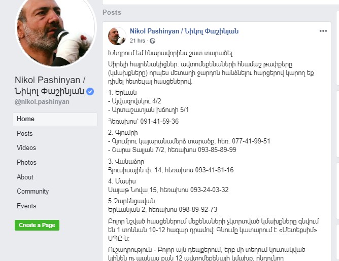 Այն, որ մեքենաների հնամաշ թափքերն իսկապես պատուհաս են դարձել, ու դրանցից պետք է ազատվել, որևէ տարակույս չկա: Հարցն այն է, թե որքանով է մետաղի թափոնի հանձնման հասցեները Ֆեյսբուքում տարածելը երկրի վարչապետի գործը: