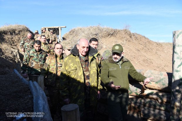 Prime-Minister of the Republic of Armenia Nikol Pashinyan and Artsakh Republic President Bako Sahakyan visited several sections of the northern borderline of NKR, got acquainted with the service and current situation on site , the Presidential Office told Armenpress.
