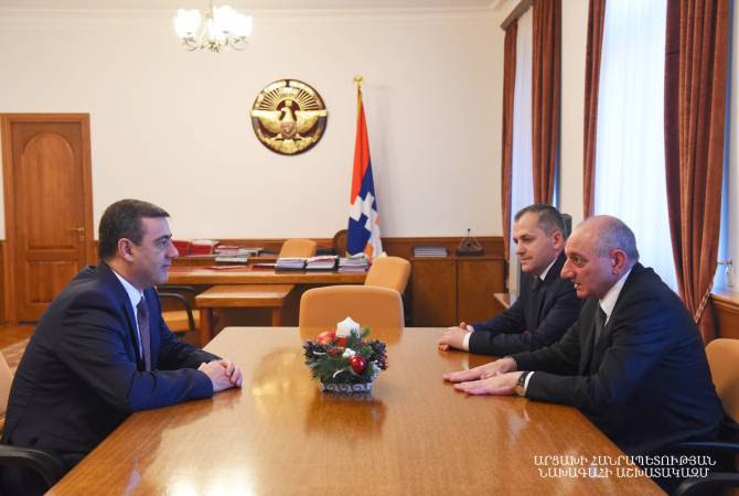 Artsakh Republic President Bako Sahakyanon December 20 received acting director of the National Security Service of Armenia Eduard Martirosyan, the Presidential Office told Armenpress.