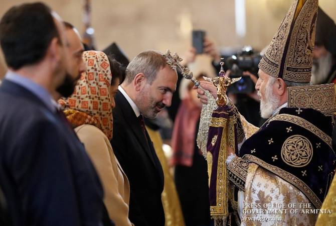 Prime Minister Nikol Pashinyan, together with his spouse Anna Hakobyan, attended a Christmas and Epiphany mass served at the St. Gregory the Illuminator Cathedral in Yerevan, the PM’s Office said. The mass was served by Catholicos Garegin II.