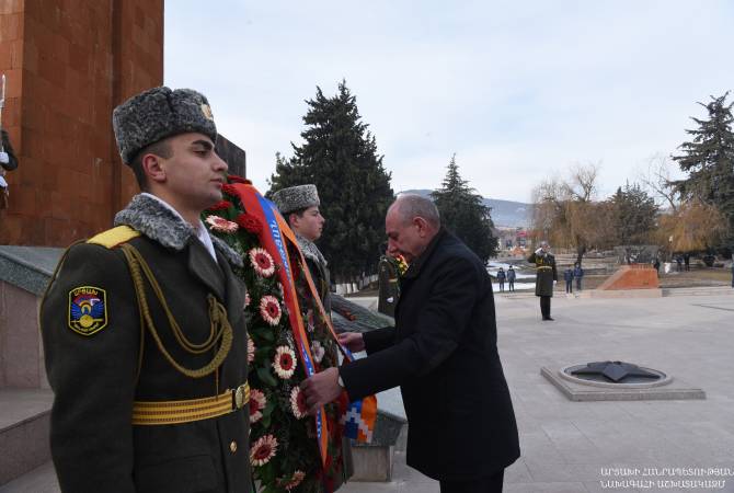 Artsakh Republic President Bako Sahakyan on January 28 visited the Stepanakert Memorial Complex on the occasion of the Army Day, the Presidential Office told Armenpress.