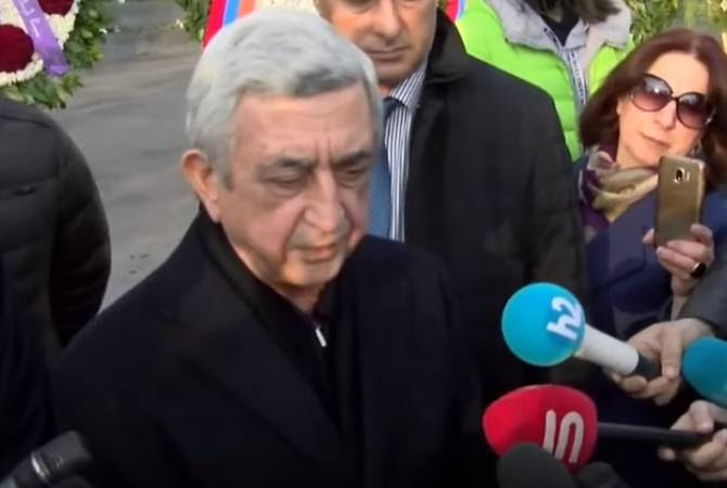 “I would like to congratulate our soldiers and officers, our generals and commanders, our courageous volunteers and the merited veterans of the Armenian army,” Sargsyan told reporters at the cemetery.