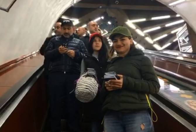 Prime Minister of Armenia Nikol Pashinyan distributes leaflets related to the Constitutional referendum scheduled on April 5 at Yerevan subway stations, ARMENPRESS reports Pashinyan posted a live broadcast on his Facebook page.