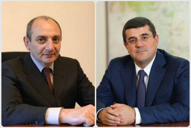 President of Artsakh Bako Sahakyan held a meeting with Arayik Haroutyunyan, the winner of the second round of the Artsakh Republic Presidential elections on April 15. As ARMENPRESS was informed from the press service of the Artsakh President’s office, Bako Sahakyan extended his congratulations to Arayik Haroutyunyan on being elected to the high position of the Artsakh Republic President and wished him successful and efficient work.
