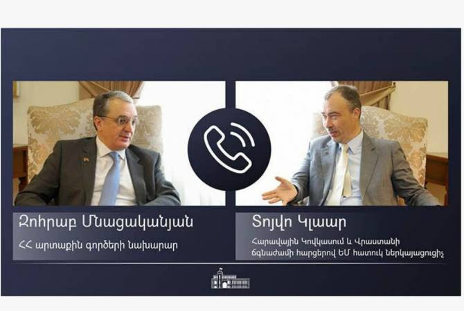 ՀՀ ԱԳ նախարար Զոհրաբ Մնացականյանը ապրիլի 29-ին հեռախոսազրույց ունեցավ Հարավային Կովկասում և Վրաստանի ճգնաժամի հարցերով ԵՄ հատուկ ներկայացուցիչ Տոյվո Կլաարի հետ: