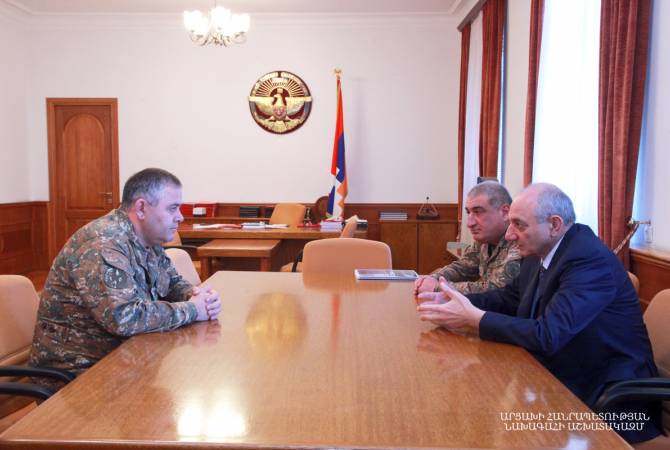 Artsakh Republic President Bako Sahakyan received today Chief of the General Staff of the Armed Forces of Armenia Artak Davtyan, the President’s Office told Armenpress.