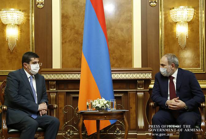Prime Minister of Armenia Nikol Pashinyan received newly elected President of Artsakh Arayik Harutyunyan. ARMENPRESS reports this is the 1st official meeting between them since Arayik Harutyunyan assumed the post.