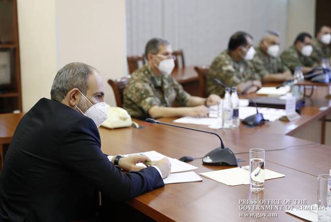 ՀՀ վարչապետ Նիկոլ Փաշինյանն աշխատանքային հանդիպում է ունեցել Պաշտպանության նախարարության և Զինված ուժերի ղեկավար կազմի հետ՝ նախարար Դավիթ Տոնոյանի և ԶՈՒ գլխավոր շտաբի պետ, գեներալ-լեյտենանտ Օնիկ Գասպարյանի գլխավորությամբ: Ինչպես «Արմենպրես»-ին տեղեկացրեցին ՀՀ վարչապետի աշխատակազմի տեղեկատվության և հասարակայնության հետ կապերի վարչությունից, հանդիպման ընթացքում քննարկվել են տարածաշրջանում ստեղծված ռազմաքաղաքական իրադրության հնարավոր զարգացումներն ու Զինված ուժերի կիրառման պլանը: