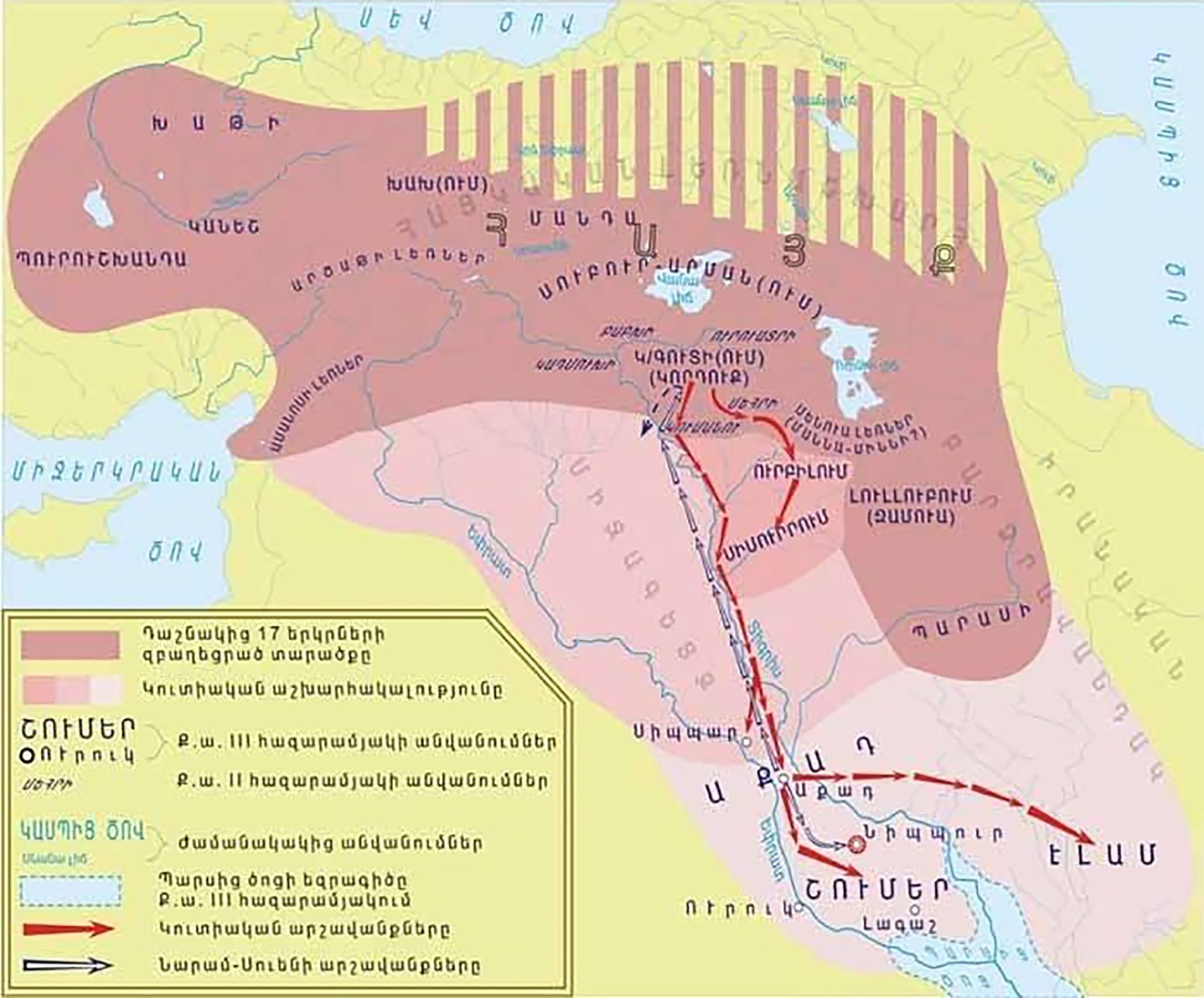 [5]- Գագիկ Յարութիւնեան եւ այլք…, Մեր յաղթանակները, Հատոր Ա, Երեւան, 2008, էջ 34-35 {Կուտիական արշաւանքներն Աքադի դէմ (Ք.Ա. XXIII-XXII դարեր) խորագիրը, տես՝ էջ 32-38}: