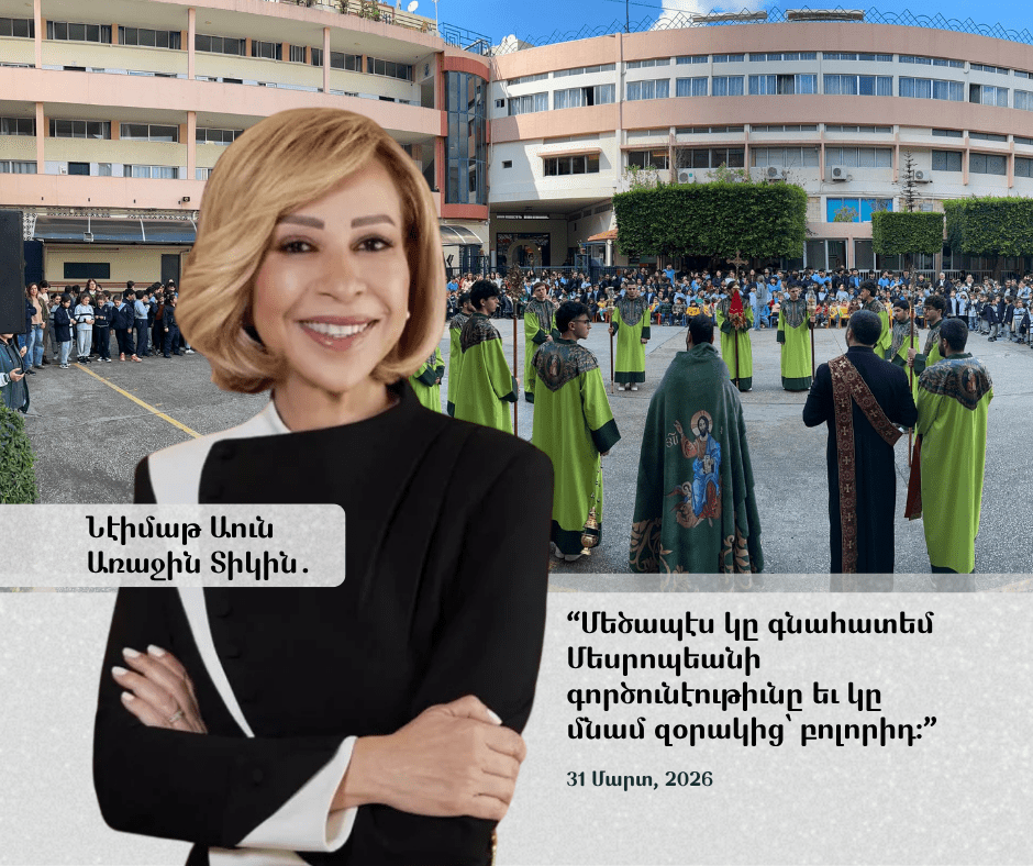 Առաջին տիկինը 31 Մարտ 2026-ին հեռաձայնեց Մեսրոպեանի տնօրէն պարոն Կրէկուար Գալուստին, մանրամասնօրէն հետաքրքրուելով դպրոցի առօրեայով, դիմագրաւած դժուարութիւններով եւ կրթական ընտանիքի բոլոր անդամներուն վիճակով։